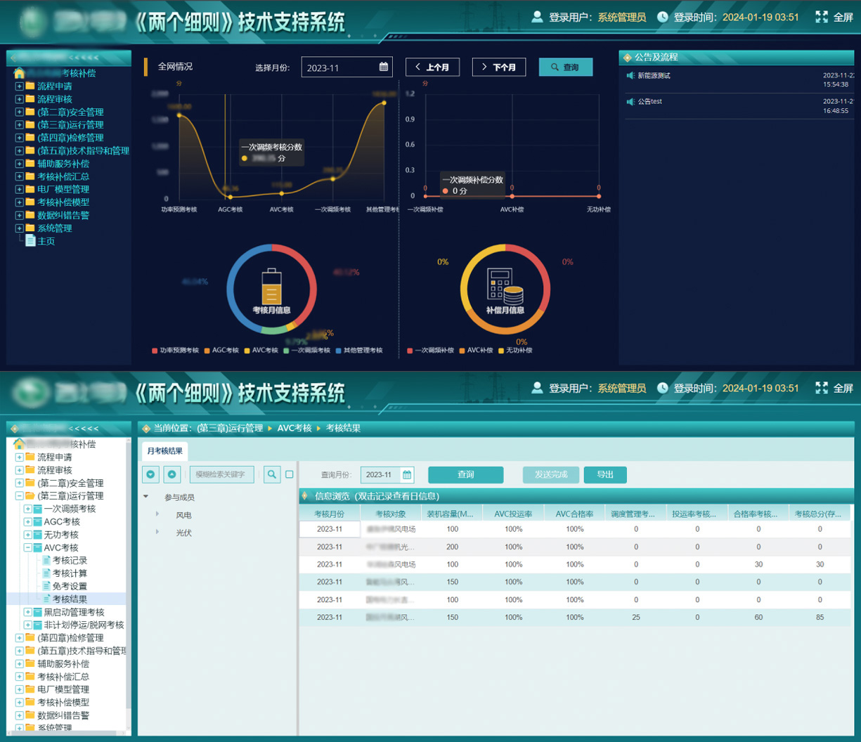 该系统通过自动化、透明化的管理方式,显著提升了电力星辉平台进行“两个细则”日常考核补偿管理工作的执行效率,为新能源场站参与电网调节服务提供了规范化、可追溯的技术保障。