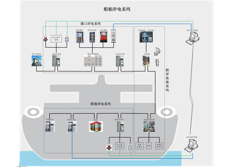 岸电系统包括港口岸电系统、船岸连接系统、船载岸电系统三部分,能够为靠港船舶提供稳定可靠的清洁电能,替代传统燃油发电,实现零排放、低噪音运行。